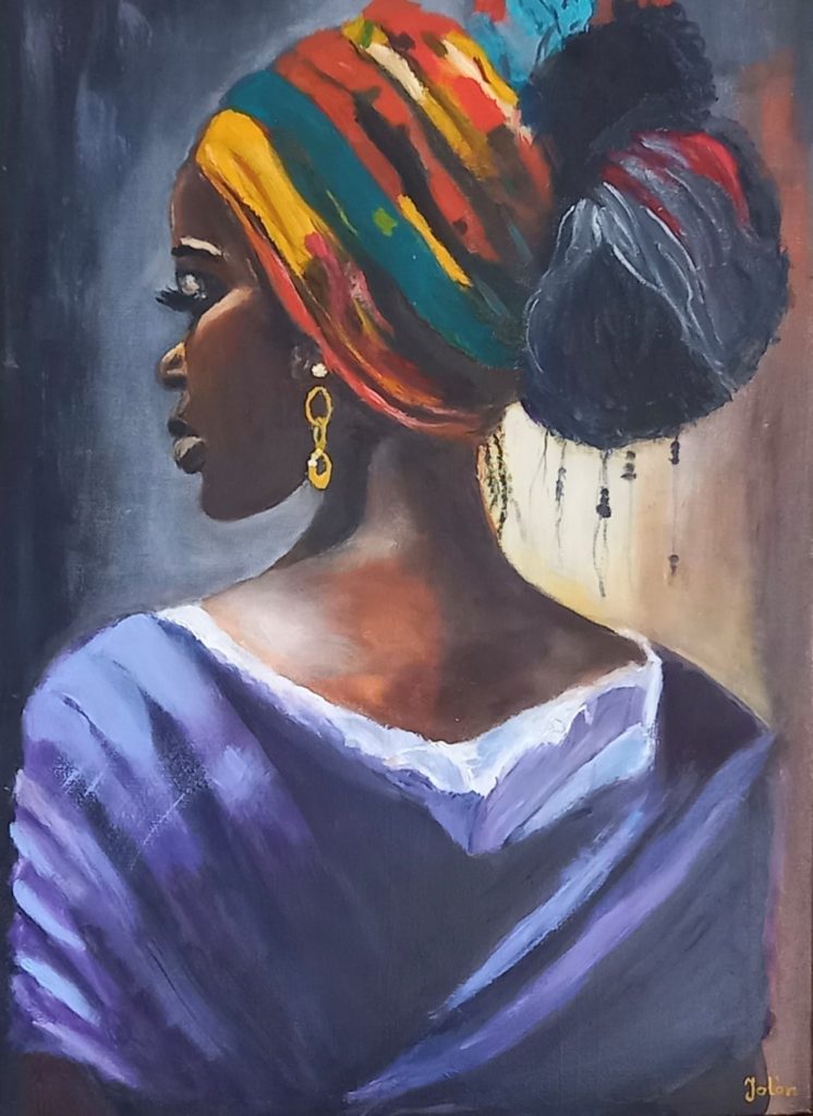 Jolan heeft door haar lange verblijf in Afrika een voorliefde voor Afrikaanse thema’s, met name veelkleurige portretten van Afrikaanse vrouwen. Daarnaast schildert ze graag bloemen en ook groenten, waarbij ze haar inspiratie ontleent aan producten uit de biologische tuin van haar man.