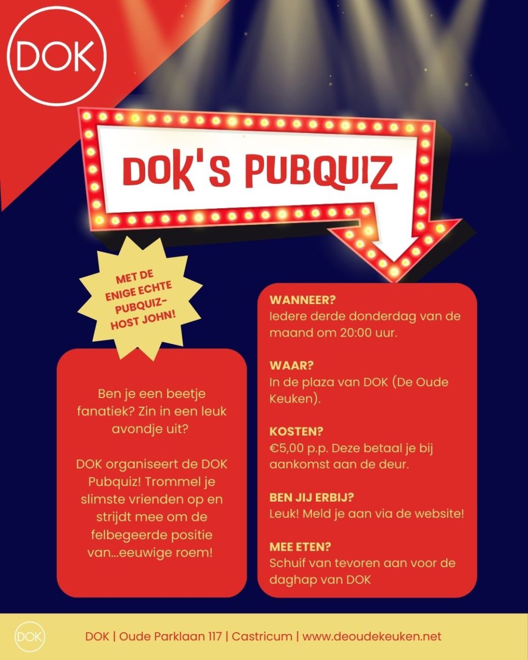 Test je kennis en beleef een gezellige avond bij DOK, elke 3e donderdag van de maand.Speel samen met 2 tot 6 personen en verzin een toffe teamnaam.